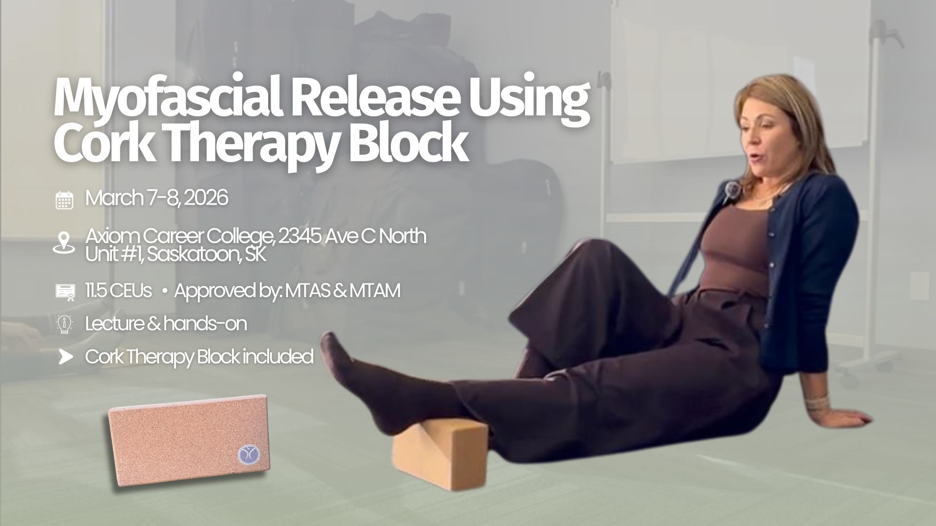 Join this two-day, CEU approved workshop which introduces participants to Blocklogic, a practical approach to myofascial release using a cork therapy block. This course combines theory and guided hands-on practice for effective learning and application.